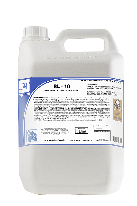 Spartan BL-10 é um detergente solvente com ação desengraxante especialmente desenvolvido para a remoção de óleo, graxa e fuligem em equipamentos industriais, maquinários, motores e peças metálicas em geral.