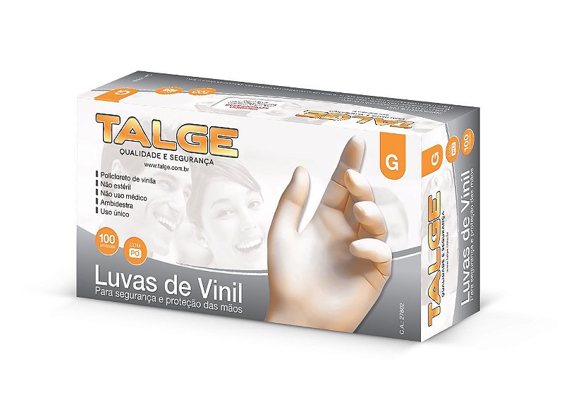Luva de Vinil com Pó Tam. M Talge c/100 Garantia contra defeitos de fabricação | Entrega Imediata