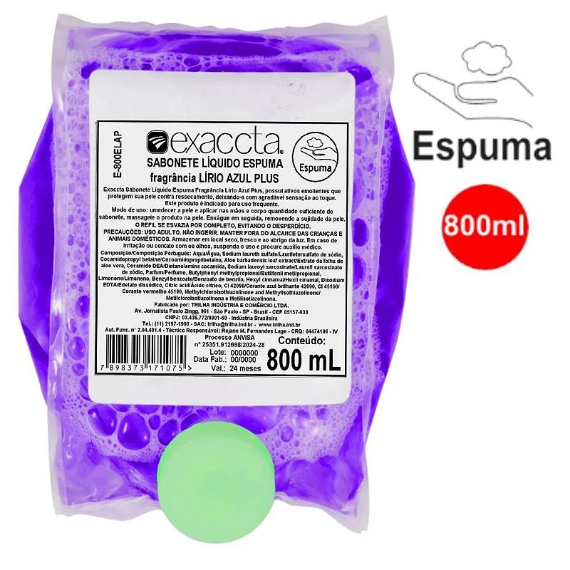 Exaccta Sabonete Liquido Espuma Lírio Azul Plus é uma espuma nobre especialmente desenvolvida para limpeza delicada da pele mesmo com uso frequente